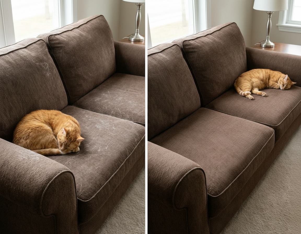 I was this close to banning my cat from the sofa because there was hair everywhere… This glove changed everything. One quick swipe and it’s clean.